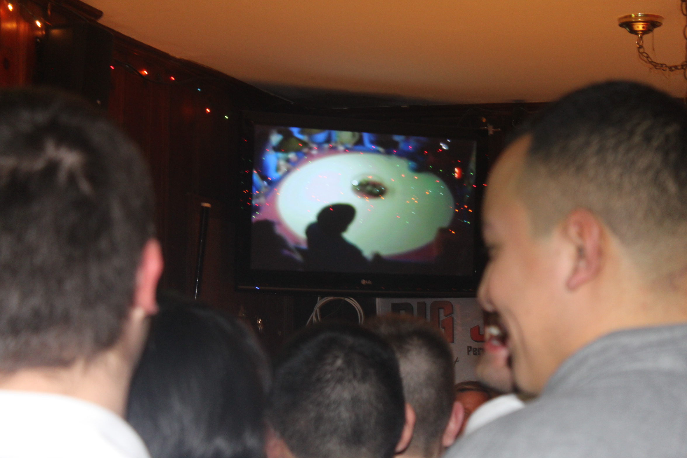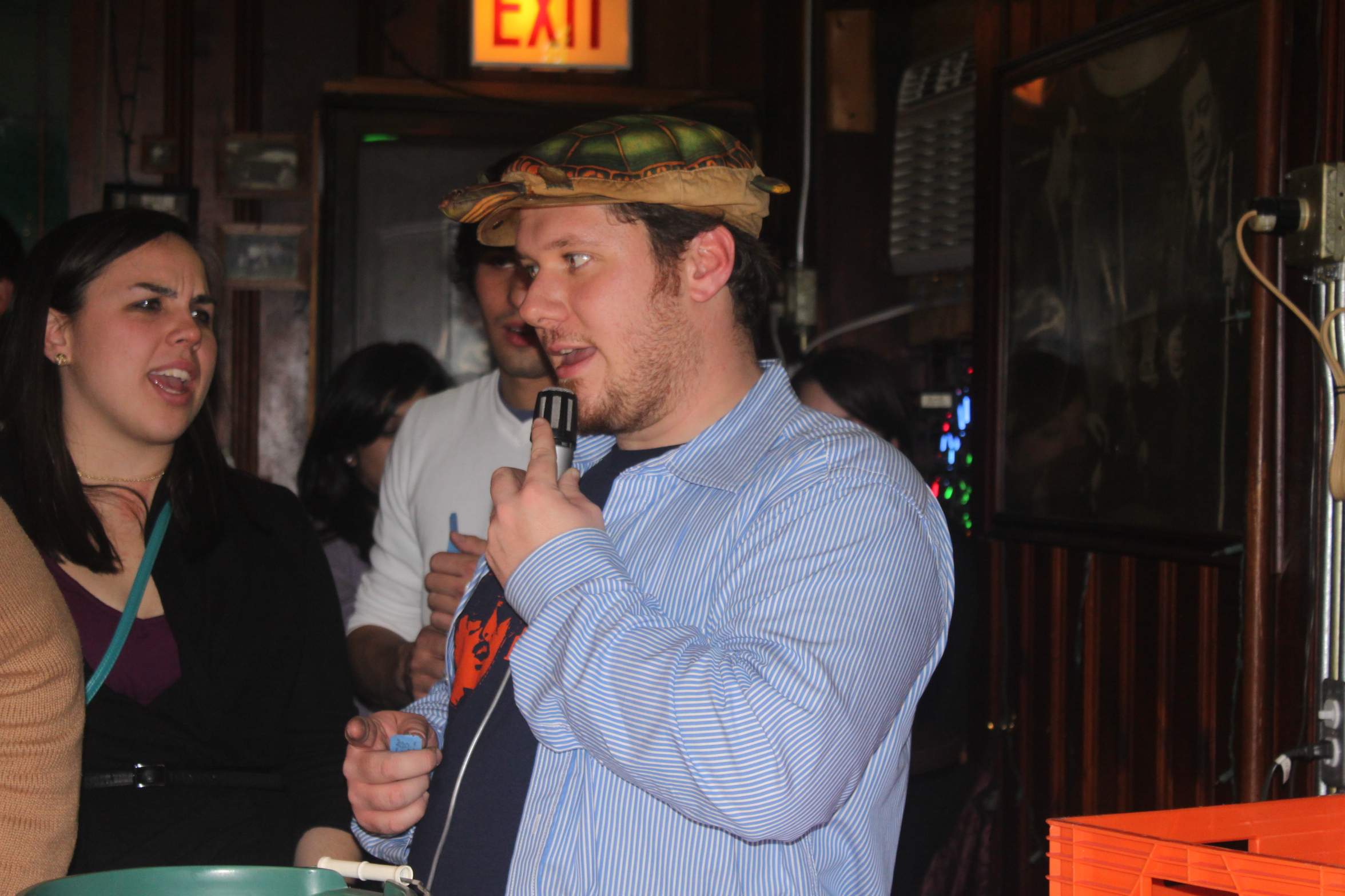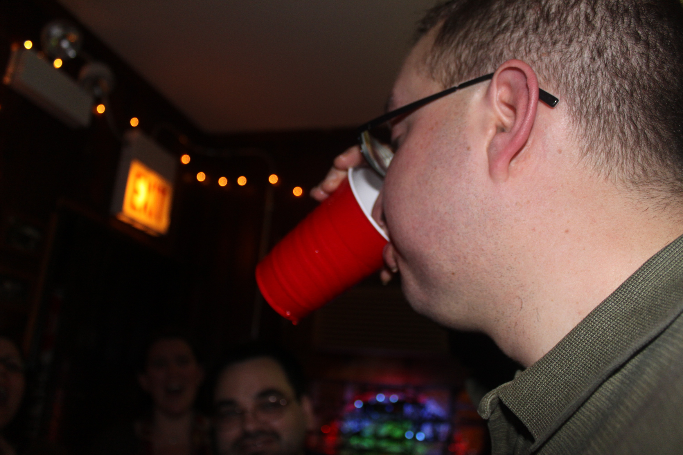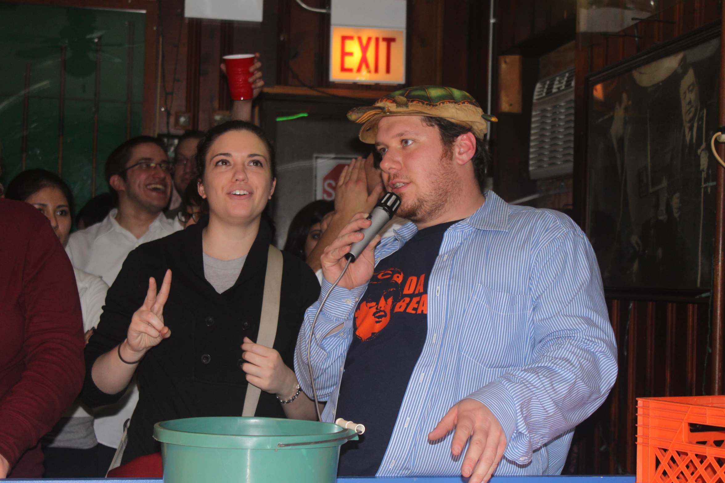 Turtles begin in the center of the ring with a cake lid covering them. The winner of the turtle race is the first turtle to get to the edge of the table. Usually the turtles will quickly move out of the orange ring (except Yolanda, who is stubborn as a mule) and then the waiting game begins! The kicker here is that the first turtle out wins you a t-shirt and gets you into the winner’s bracket for the final race. On the flip side, the last turtle out also wins you a free drink so there is still a reason to go wild for every turtle race.