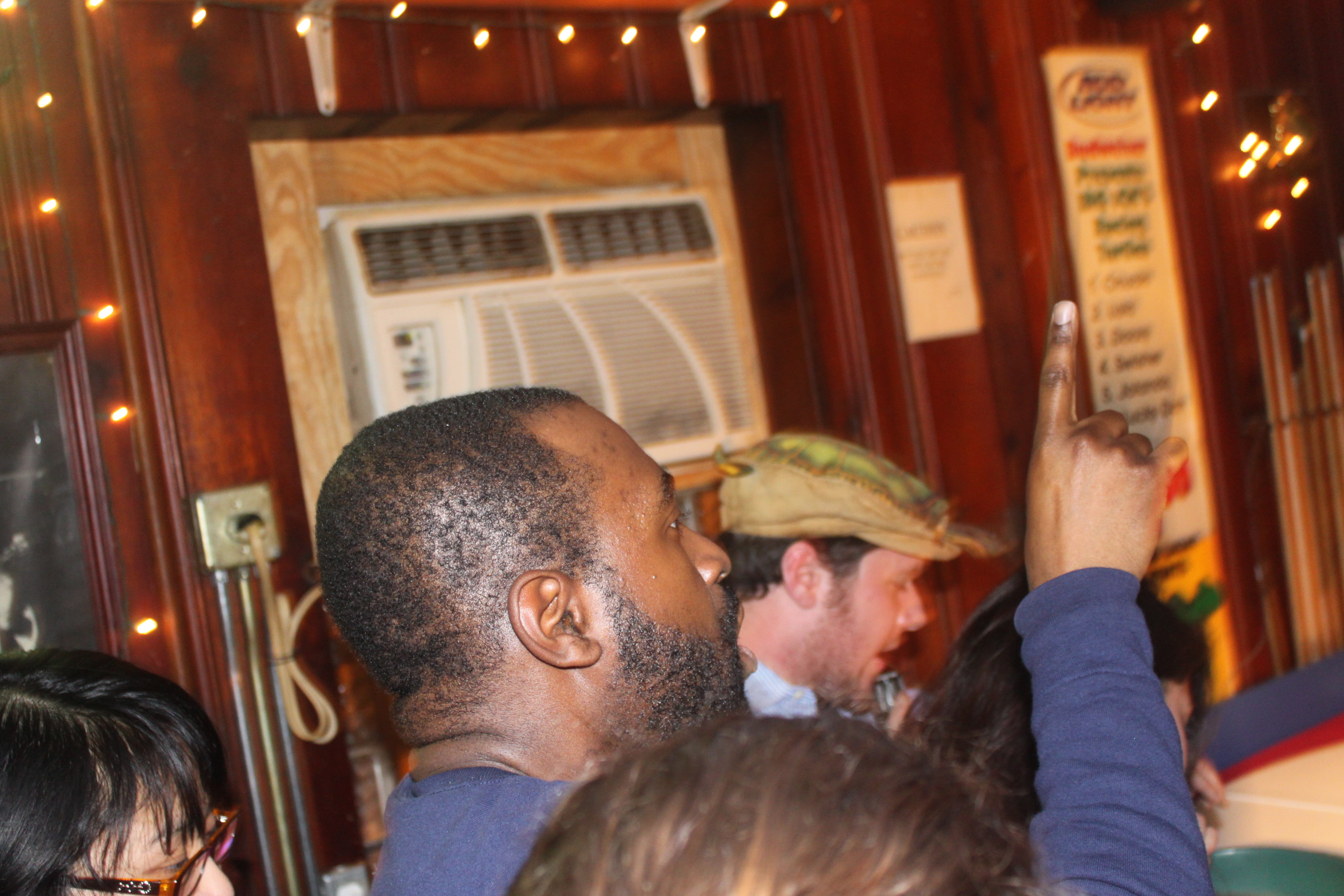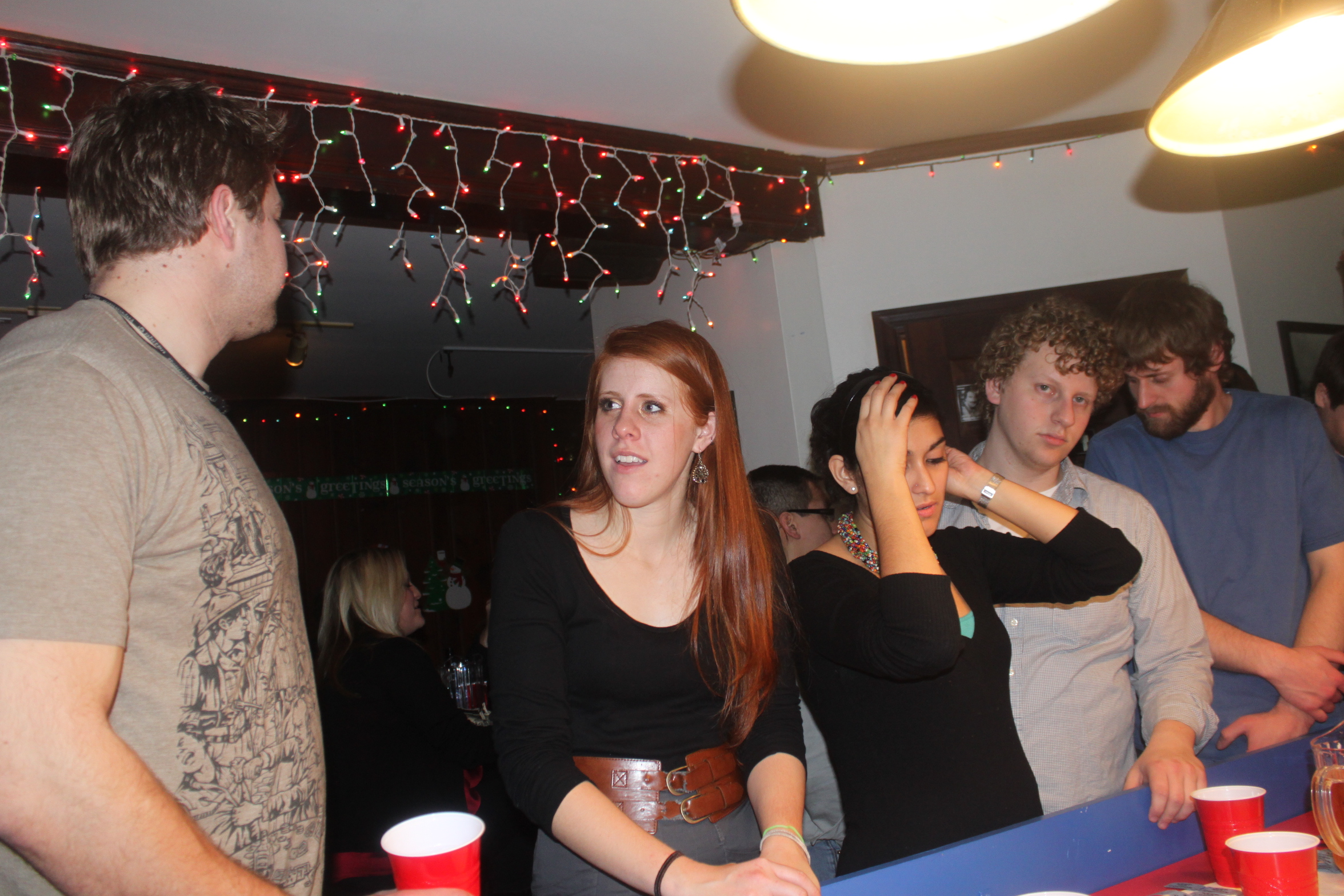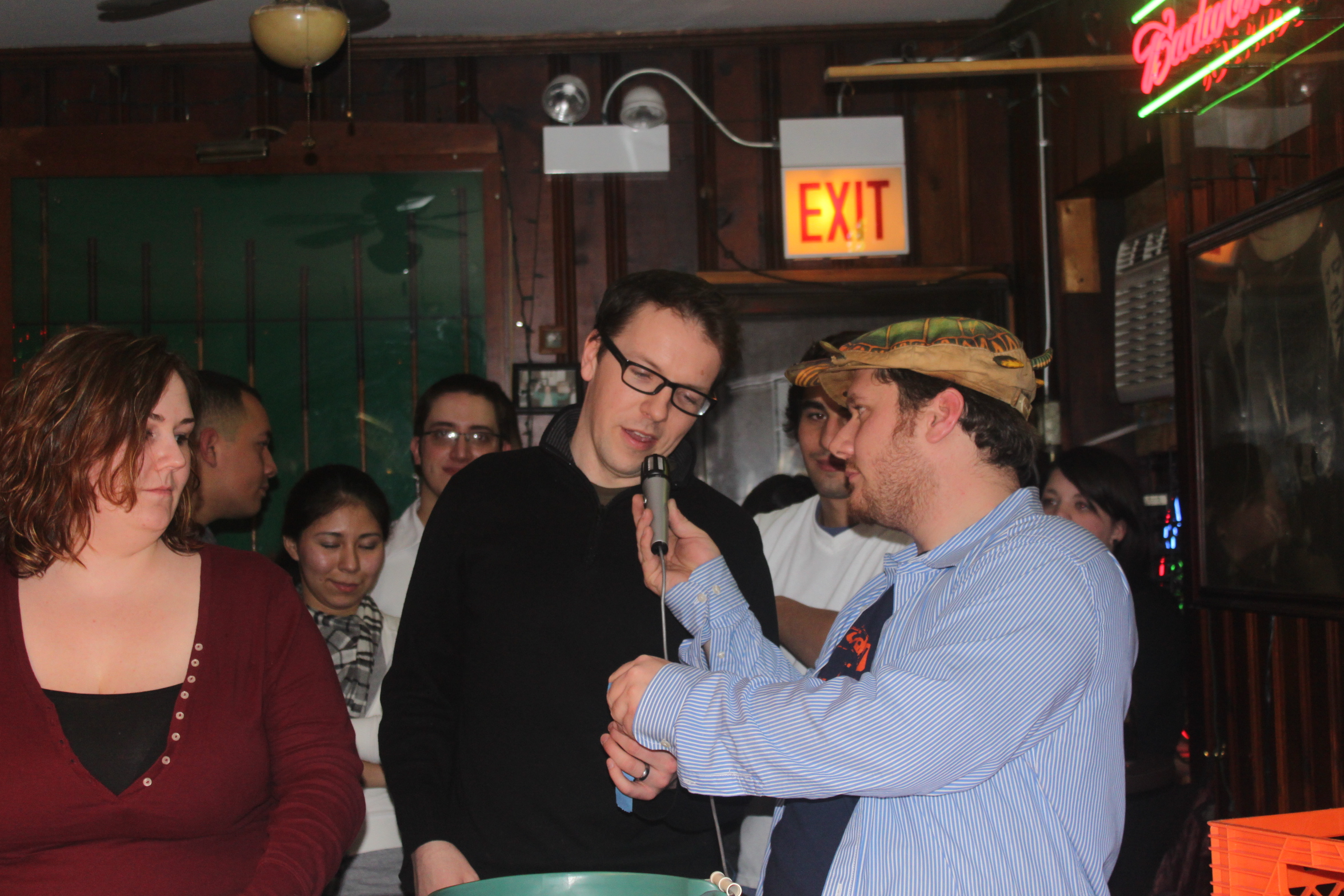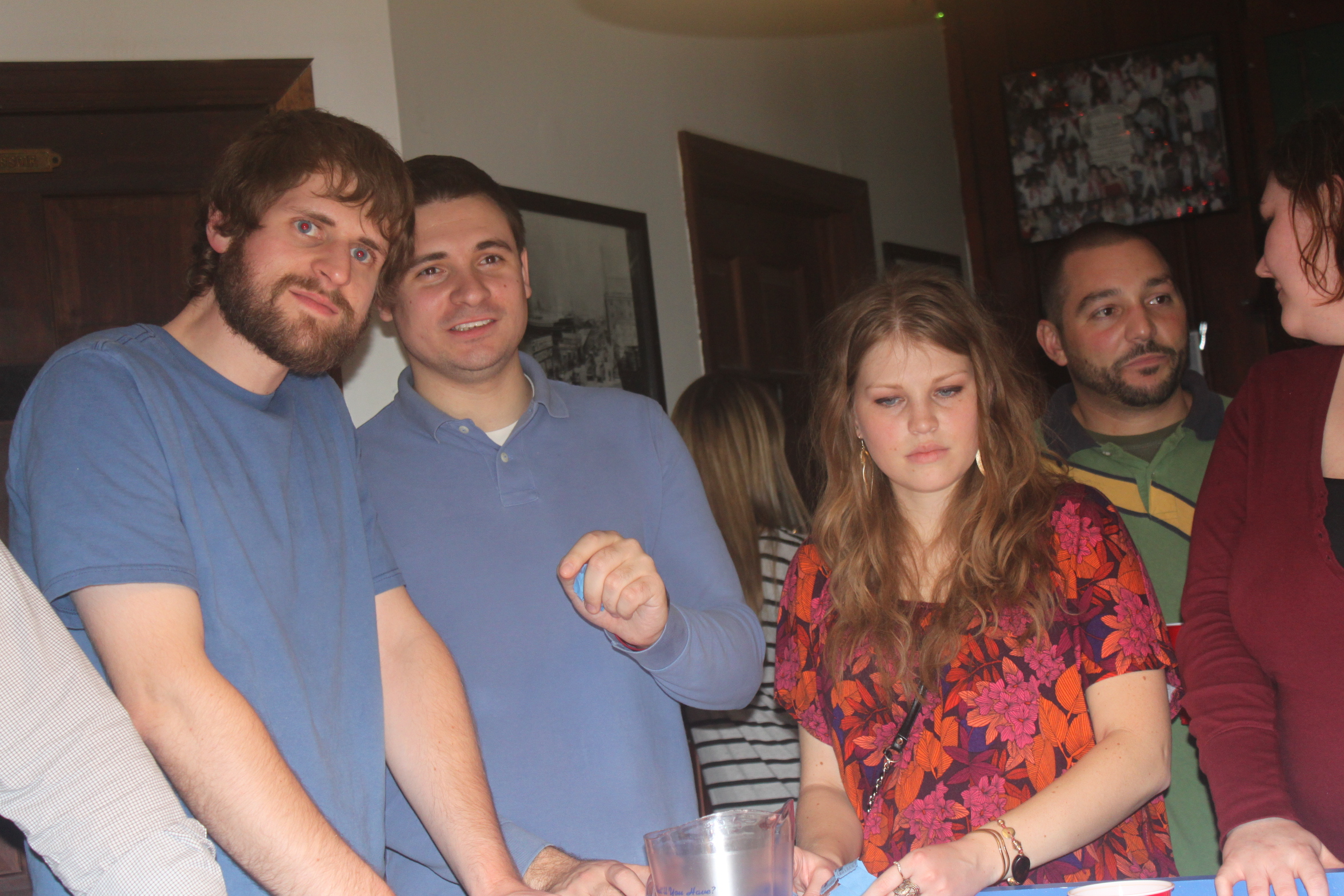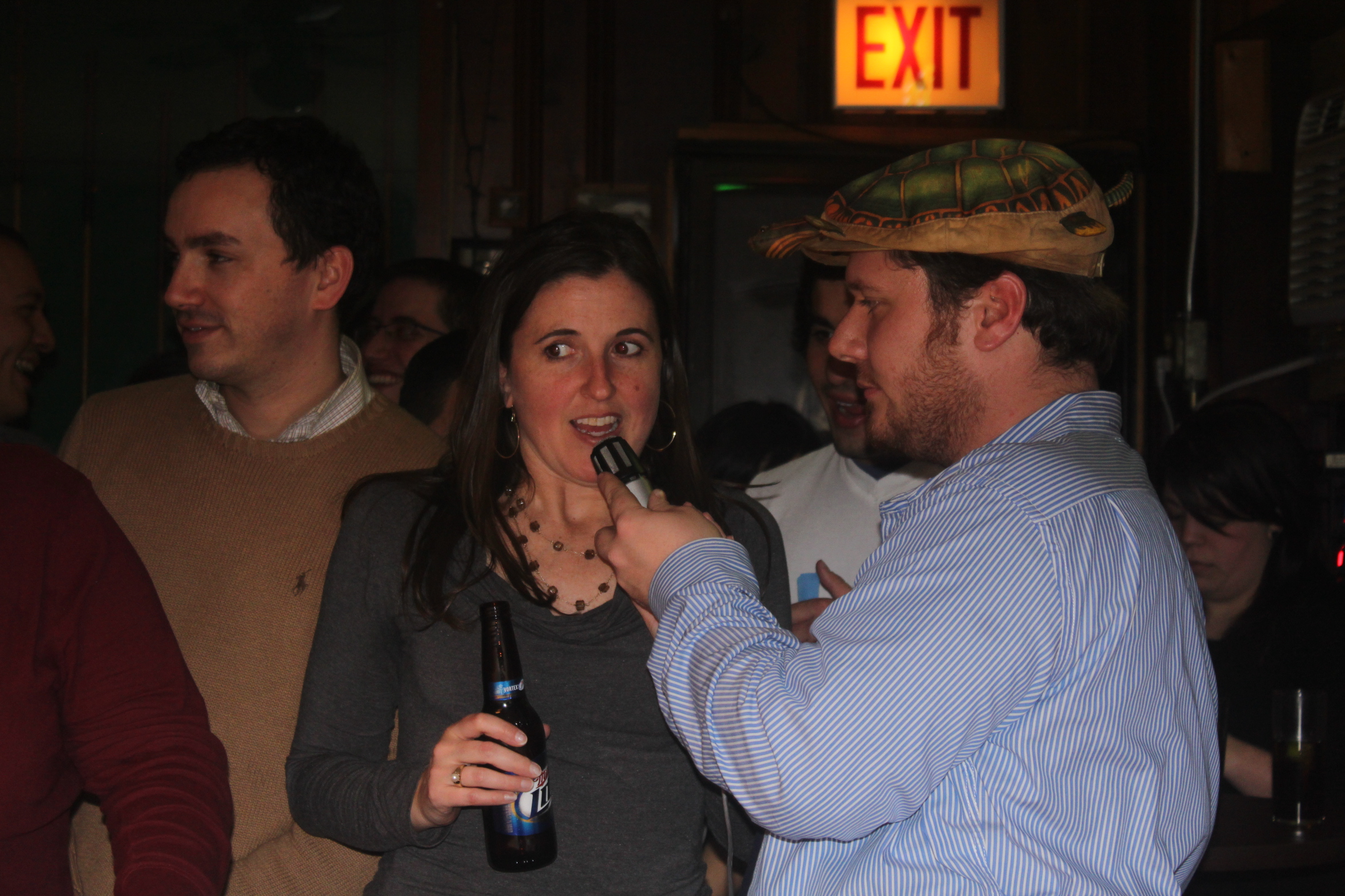 Turtles begin in the center of the ring with a cake lid covering them. The winner of the turtle race is the first turtle to get to the edge of the table. Usually the turtles will quickly move out of the orange ring (except Yolanda, who is stubborn as a mule) and then the waiting game begins! The kicker here is that the first turtle out wins you a t-shirt and gets you into the winner’s bracket for the final race. On the flip side, the last turtle out also wins you a free drink so there is still a reason to go wild for every turtle race.