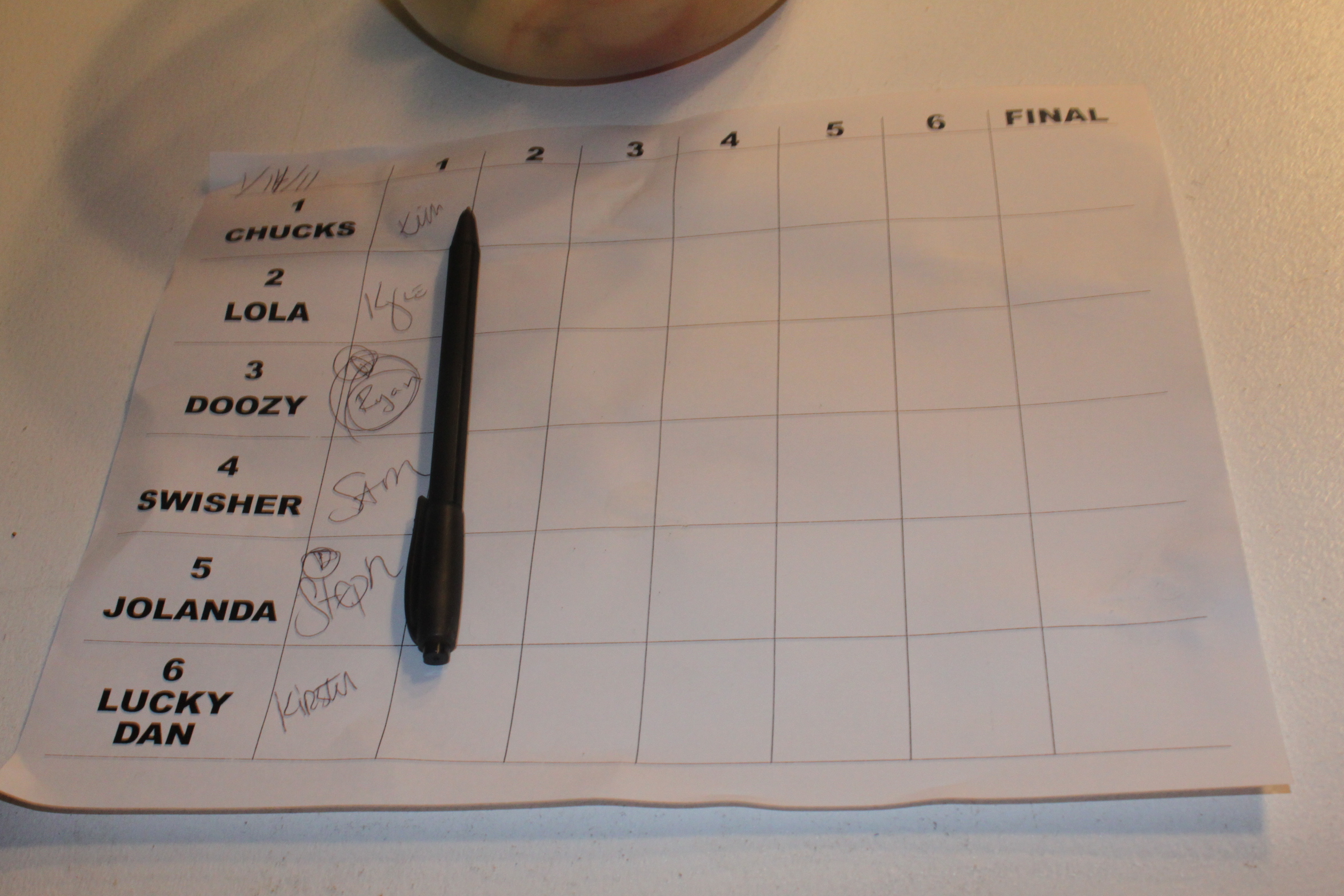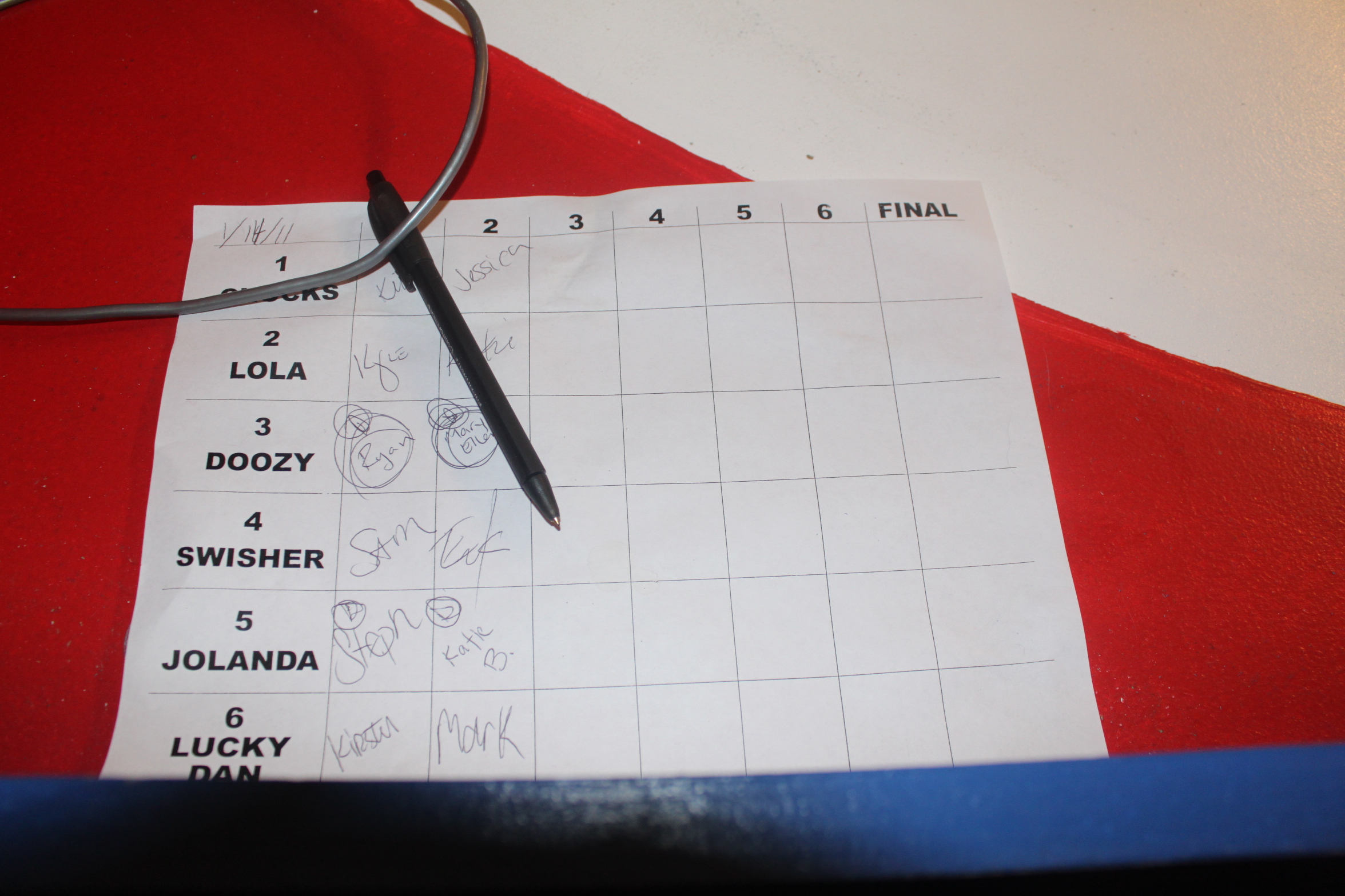 Everyone’s who’s ever gone to the turtle races knows that Yolanda is the slowest %#@%#!’n’ turtle in the world! Given this knowledge, Big Joe’s will have you randomly select from the tupperware to figure out which turtle you will be jockeying. There’s Lola, Lucky Dan, Swifter, Doozy, and Yolanda. Each turtle has its own personality and you’ll have to watch the races to find your favorite.