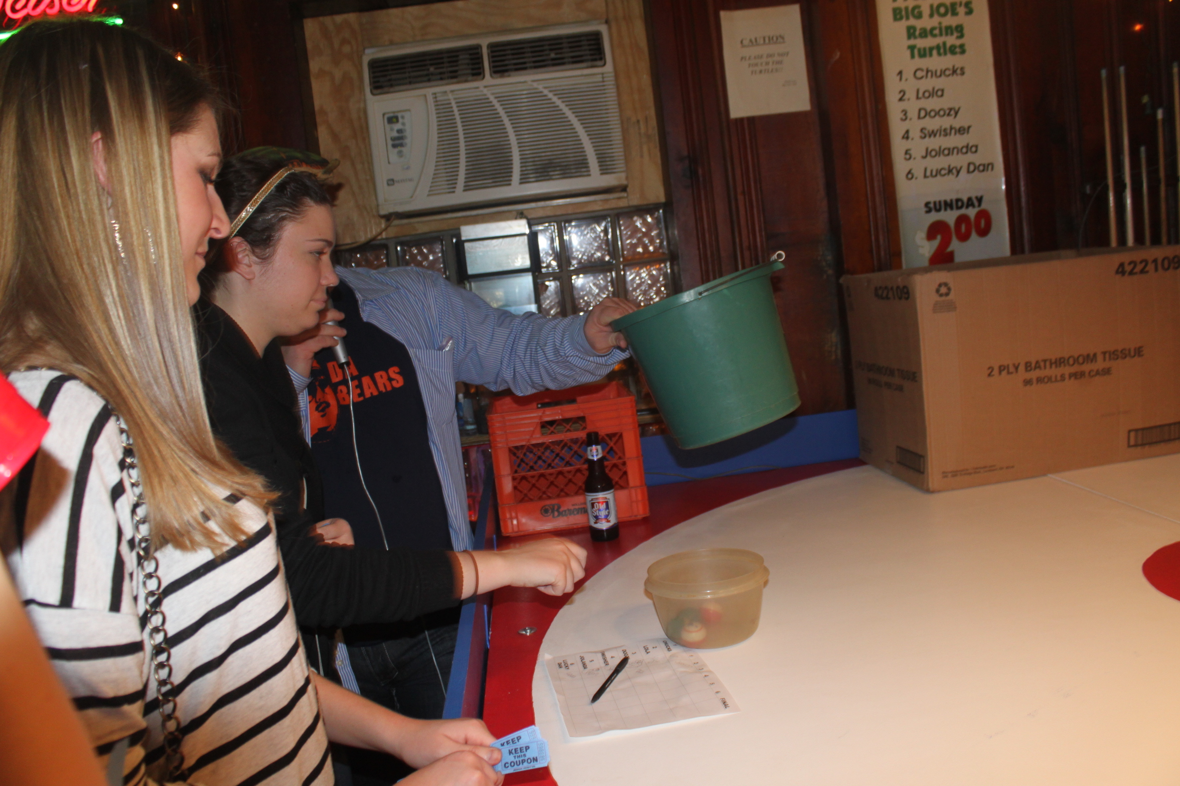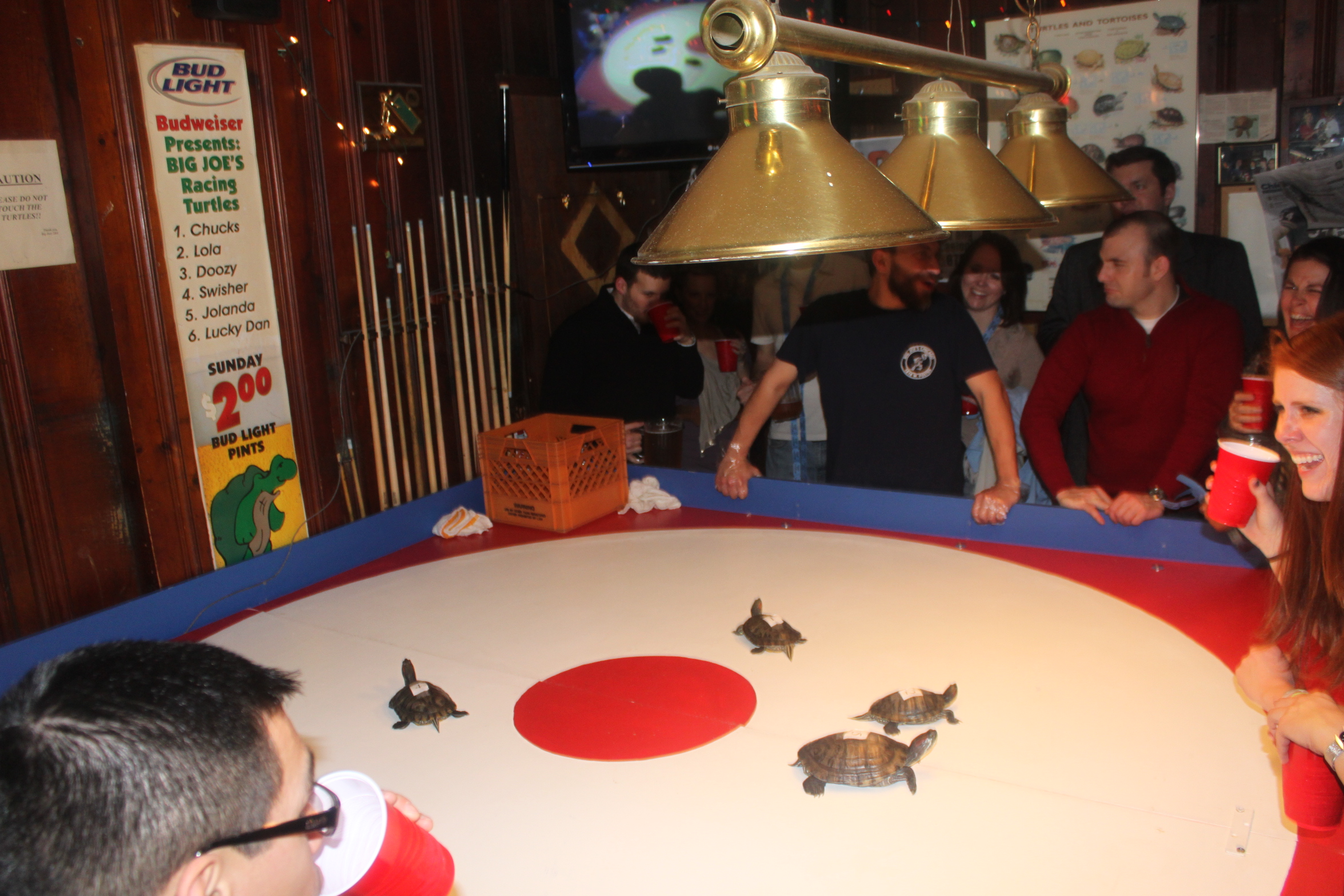 Big Joe’s 2 & 6 in Lincoln square hosts one of Chicago’s most unique events: Friday Night Turtle Races! Yes, you’ve heard right – turtle races in the bar! I don’t know who came up with turtle races, but Big Joe’s takes it to a whole other level with some All-American fun. What are the turtle races? How do these turtle races work? Well let me just tell you!