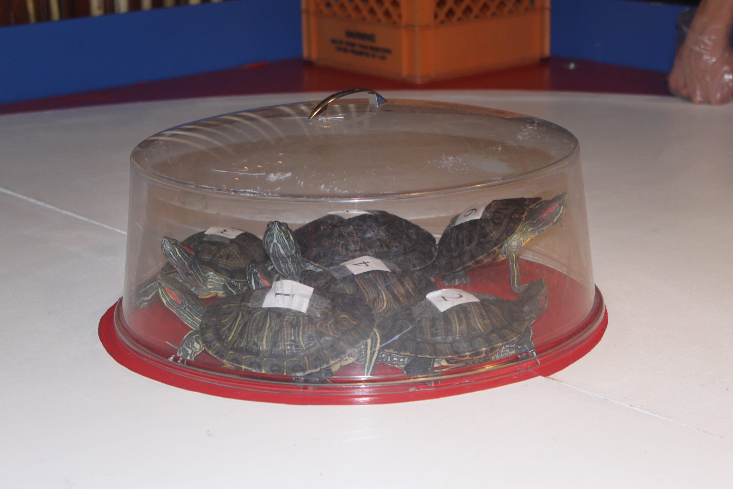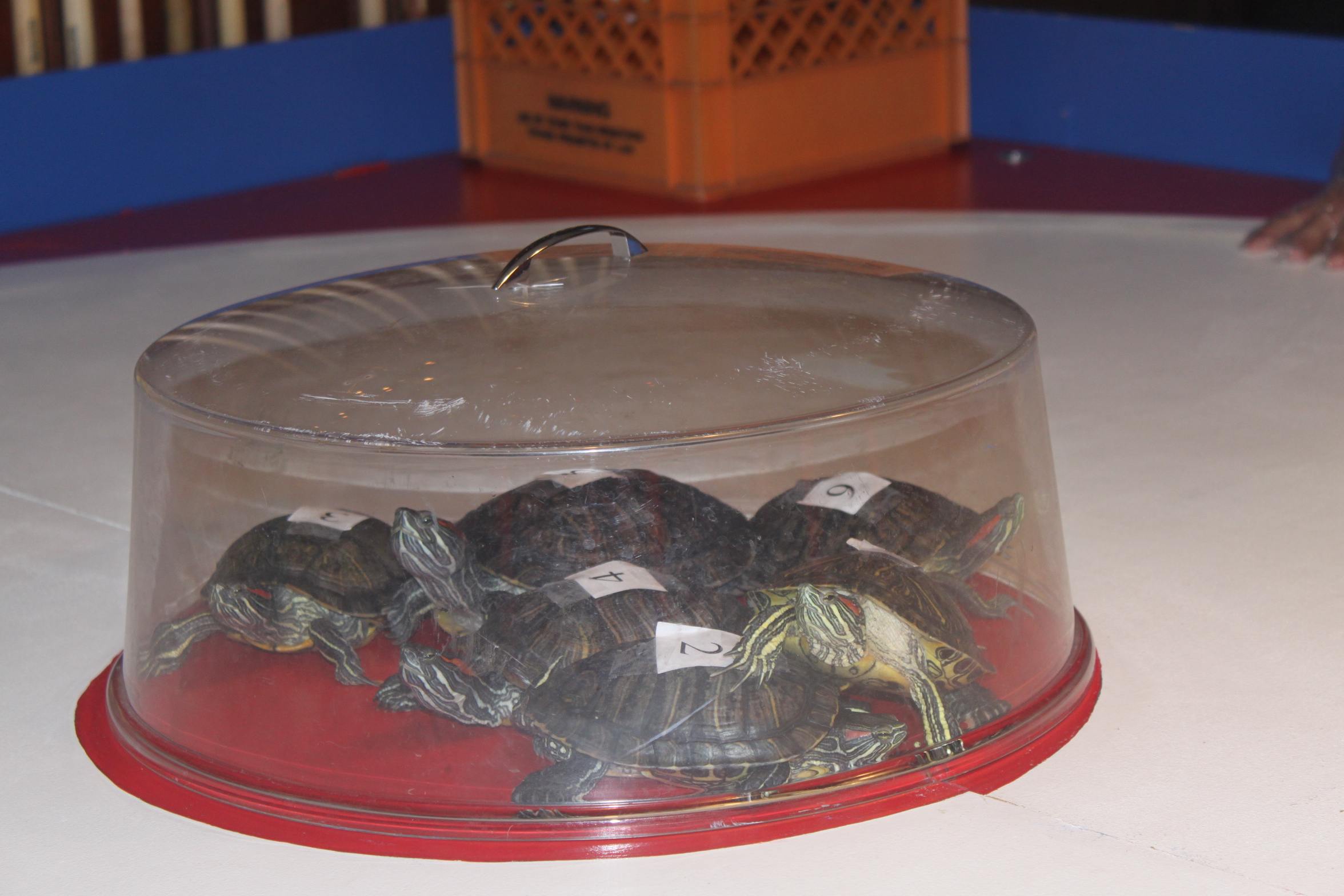 Tickets are not to be thrown out since there are six races during the course of the night and then a special race at the end of the night with all of the winners. The winner of the seventh race gets entered into a raffle for a free trip to Las Vegas. Six races with six turtle jockeys means thirty-six people will be chosen. I have yet to go to the turtle races and not had a friend or myself step up to be a turtle jockey.
